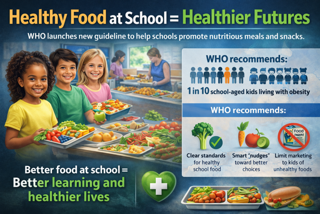 What children eat at school plays a critical role in shaping their lifelong health, learning ability, and overall well-being. Recognizing the growing global nutrition crisis among children and adolescents, the World Health Organization (WHO) has released a new global guideline aimed at helping countries create healthier school food environments—from cafeterias and vending machines to classrooms and school policies.